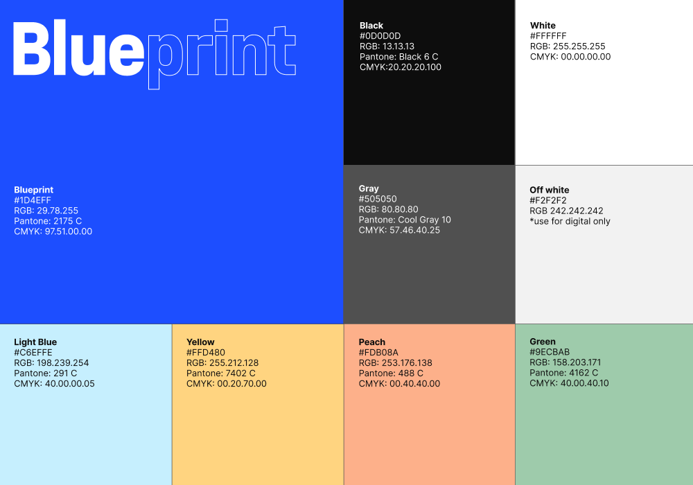 For the rest of our color palette, we wanted to add more physically grounded secondary colors of light blue, yellow, peach and green. Together the palette helps us merge the digital with the everyday real world.